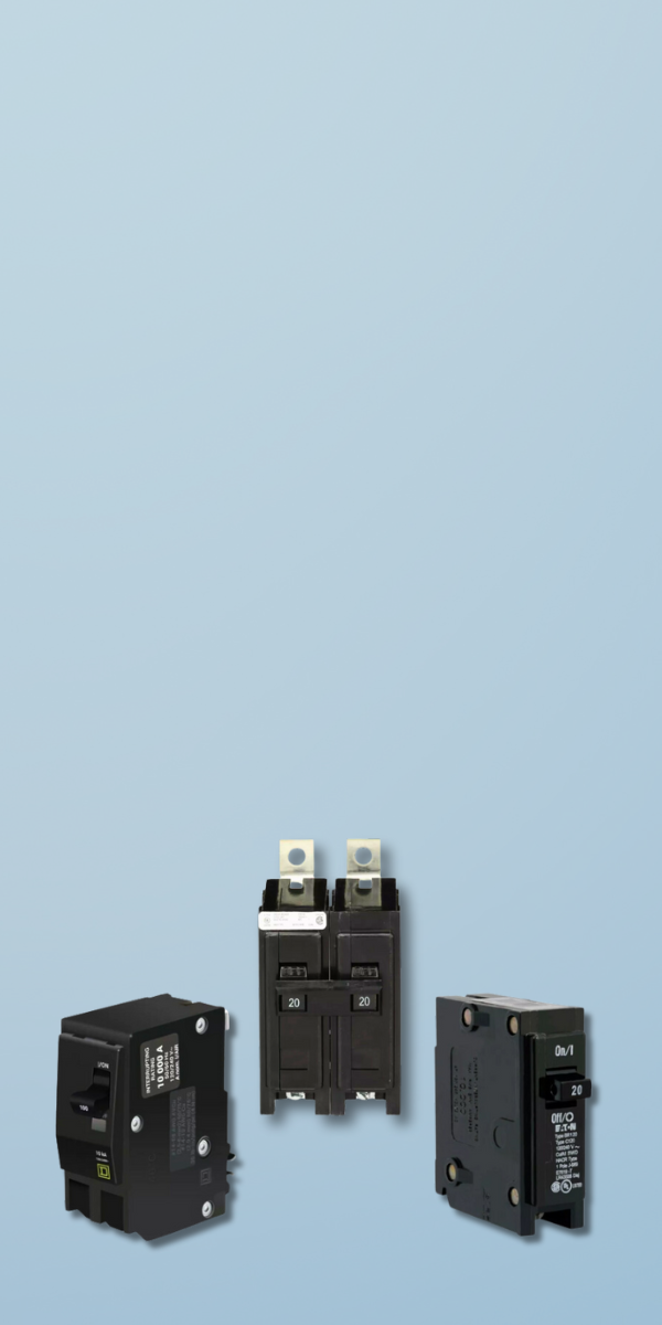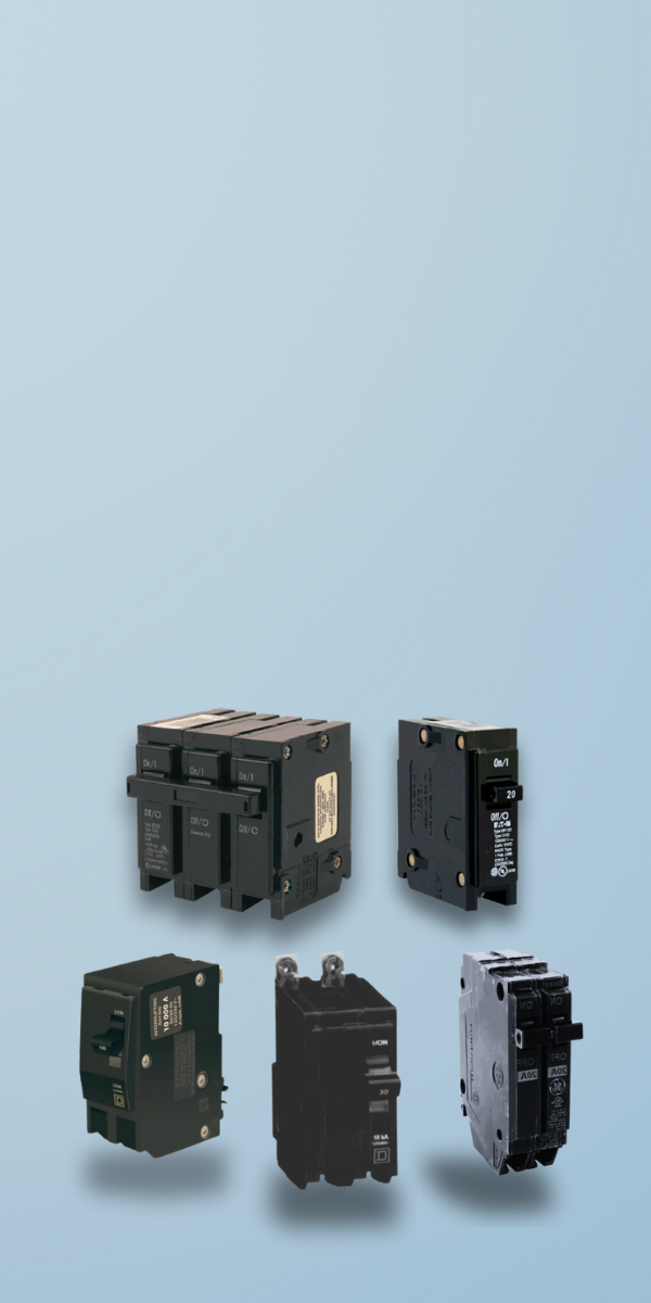 We provide a variety of circuit breakers, including 1-Pole, 2-Pole, 3-Pole, Tandem, Quad, Arc Fault, Ground Fault, Dual Function breakers, Surge Protectors, and Molded Case breakers.